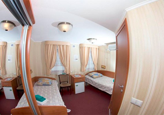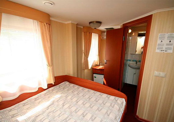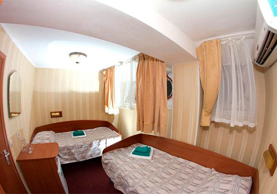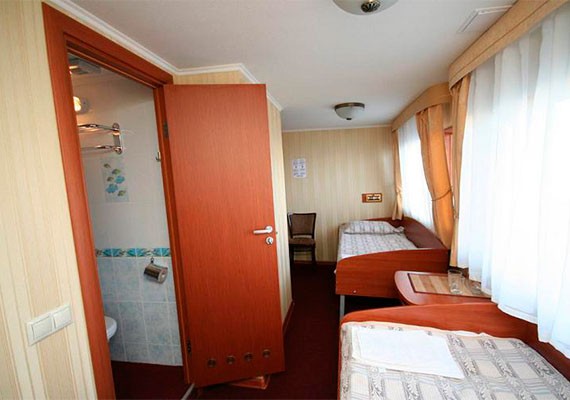 Для размещения туристов доступны одно-, двух- и трехместные каюты со всеми удобствами. В каждой каюте есть санузел, телевизор, холодильник, кондиционер, шкаф для одежды.