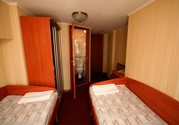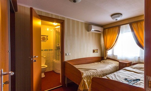 Двухместные каюты с одной двухспальной или двумя односпальными кроватями. Расположены на средней палубе. Возможно дополнительное размещение на раскладушке. Площадь: 12,2 кв.м.