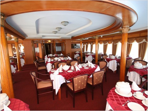 В стоимость круиза на четырехпалубном теплоходе включено трехразовое питание в ресторане: завтрак, обед и ужин по заказному меню. Питание в ресторане осуществляется в две смены. Есть отдельное меню для детей.
