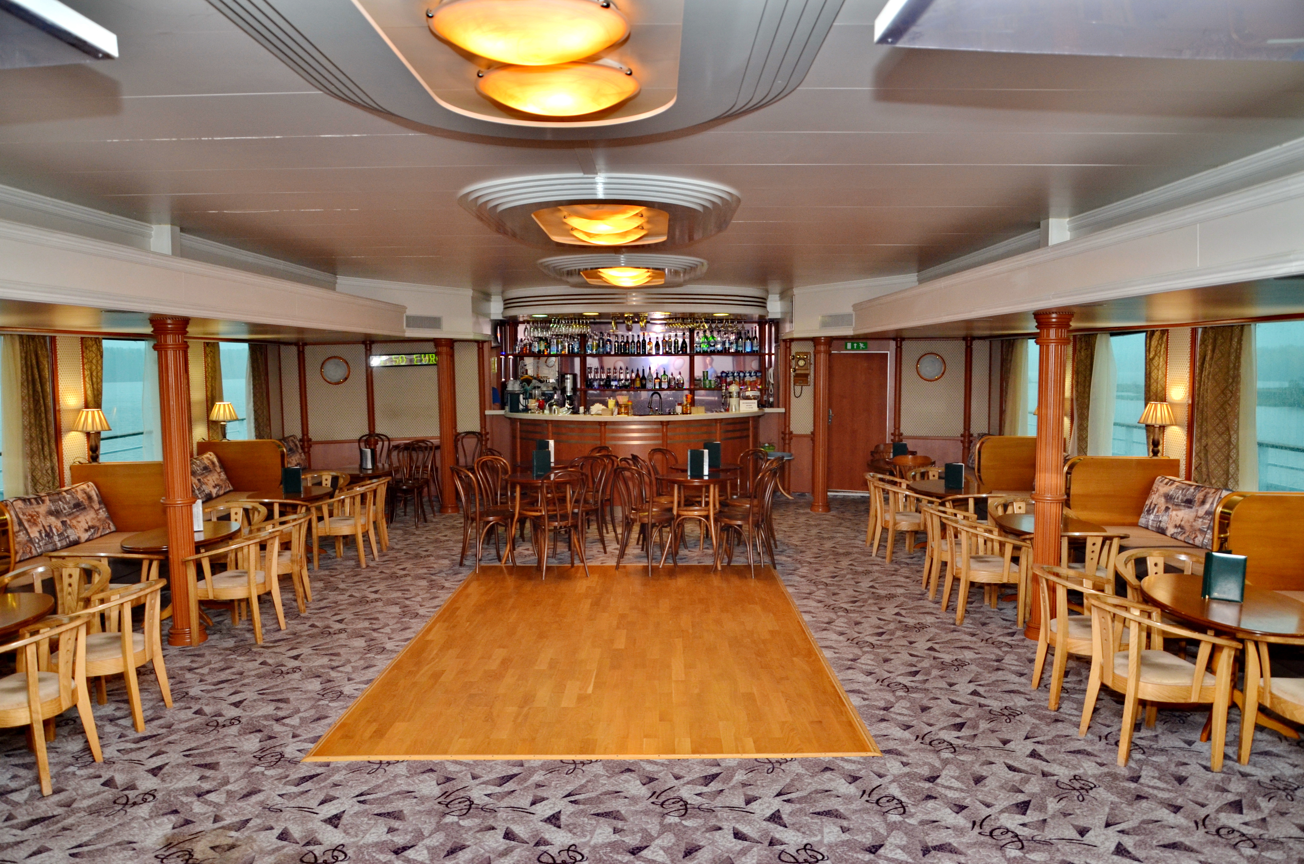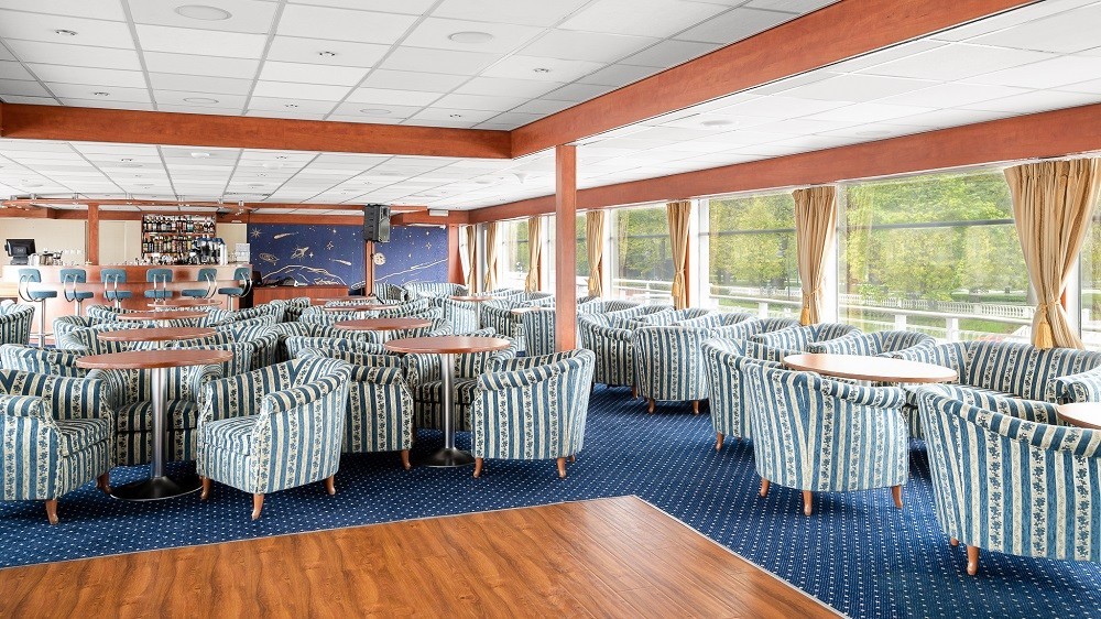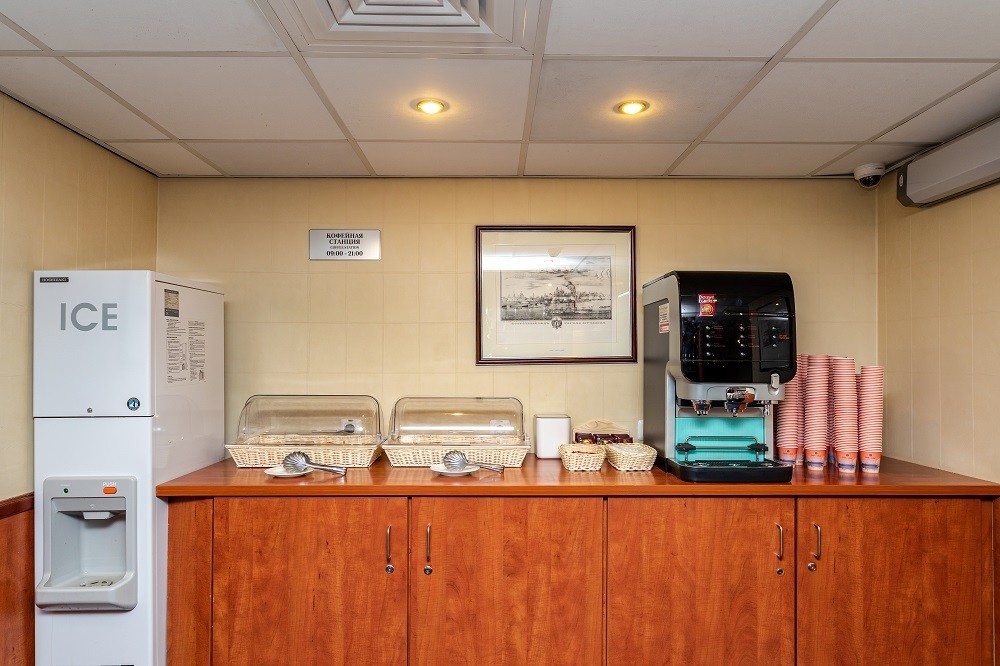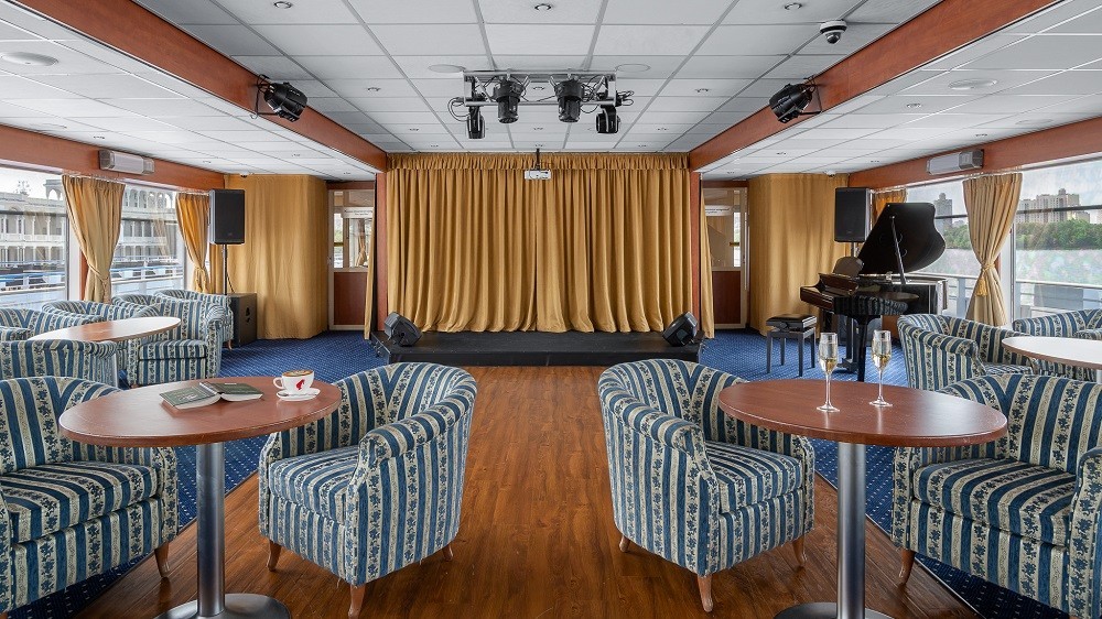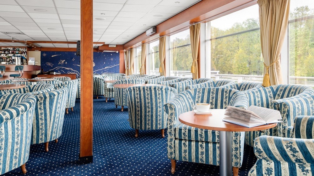 На судне работает 2 бара: панорамный бар и лаундж-бар. Вы сможете порадовать себя богатым выбором напитков, закусок и десертов, а также насладиться ароматным кофе Jardin Supremo (арабика из Колумбии), приготовленным профессиональным бариста.