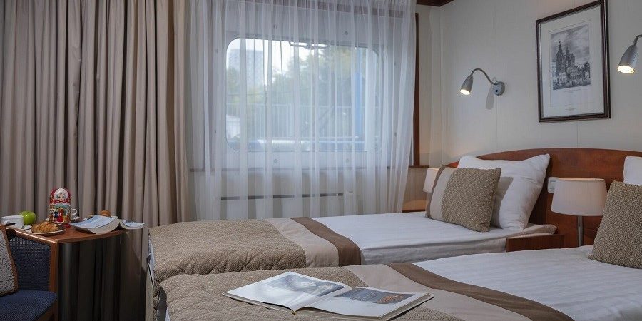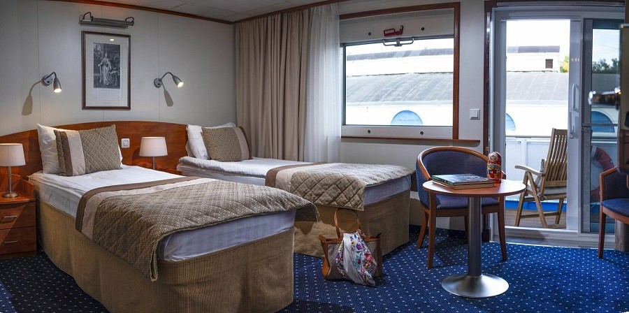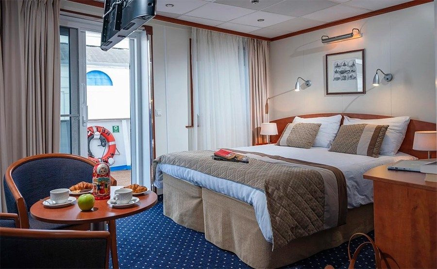 Для комфортного размещения гостям предлагаются: 2 каюты категории «Панорама с балконом» с панорамным видом и увеличенным балконом, 72 двухместные и 2 одноместные каюты «Полулюкс с балконом», 28 двухместных и 4 одноместных каюты «Полулюкс».